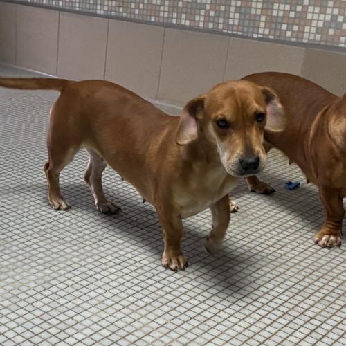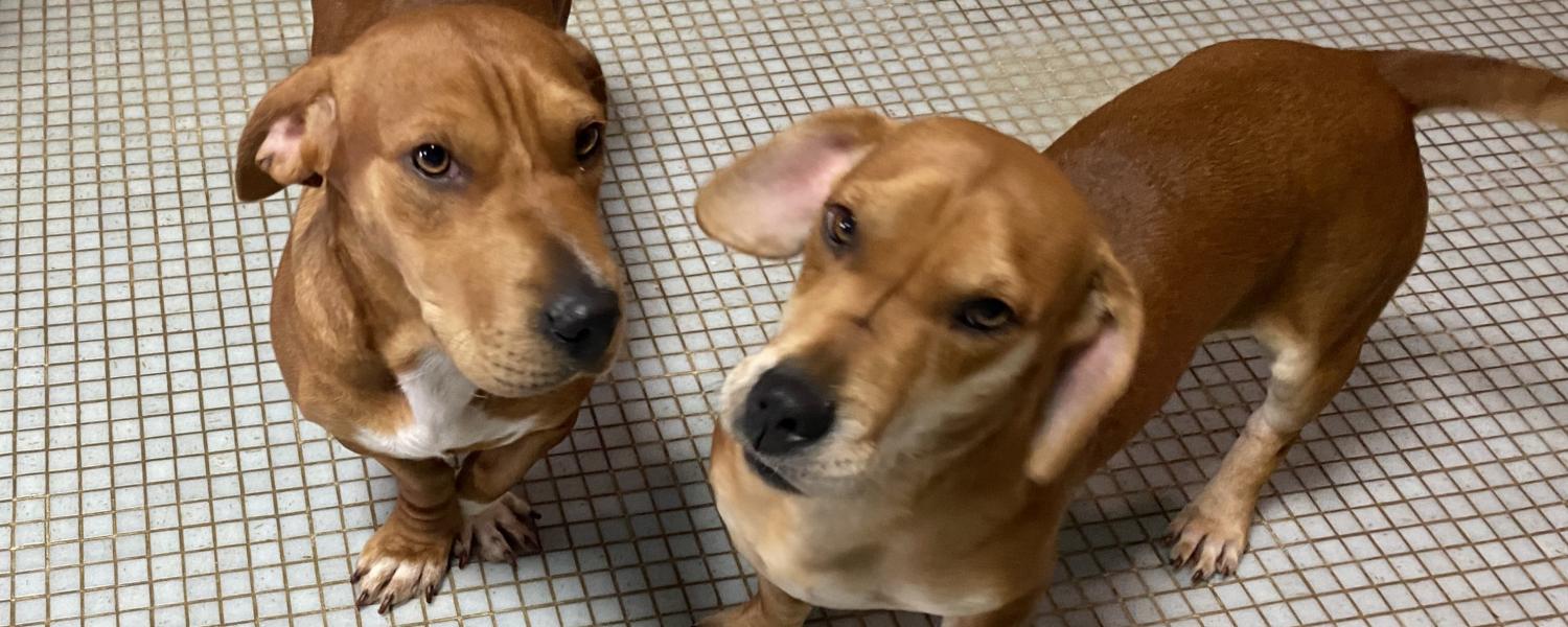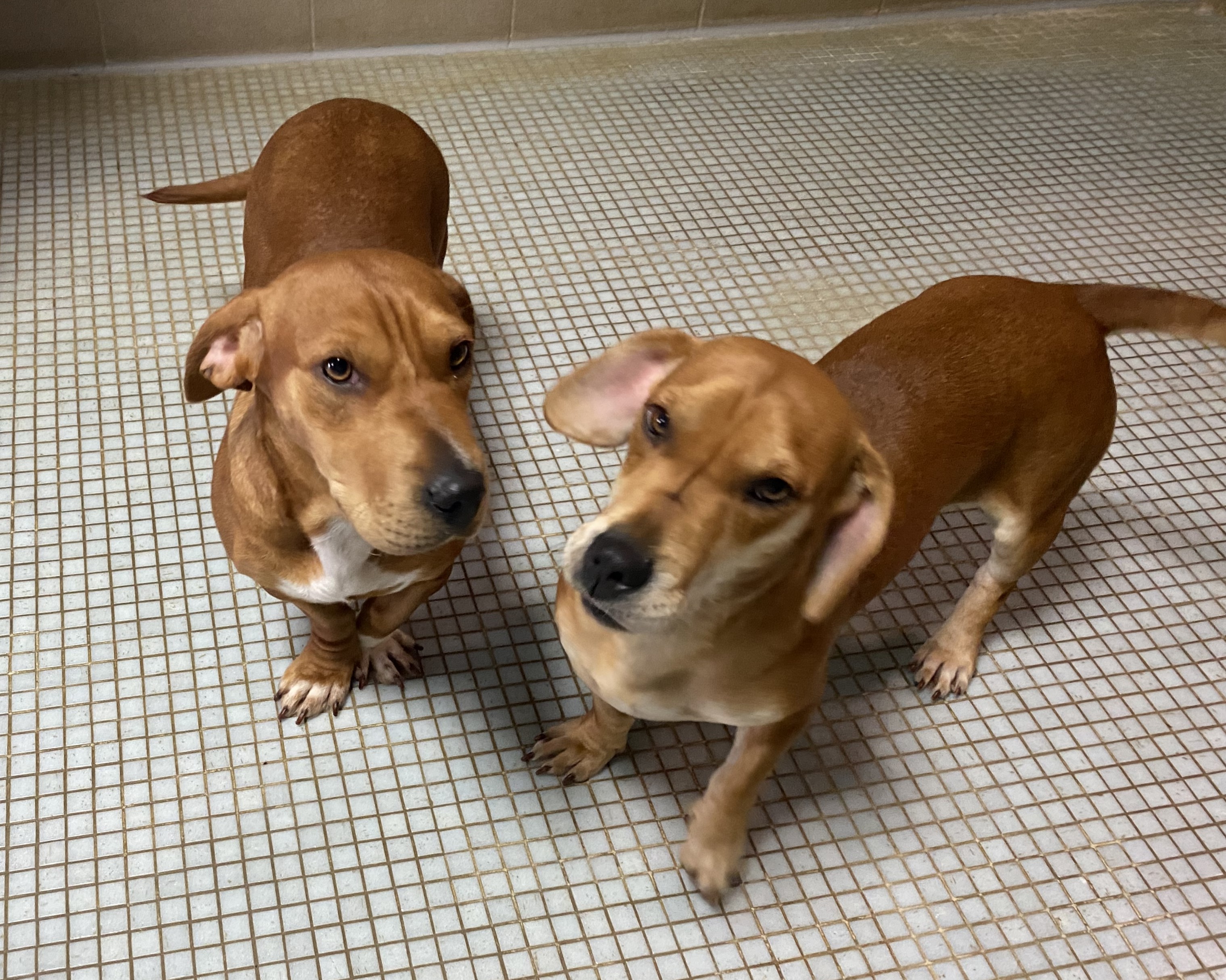 Aufgrund ihres langen Rückens und den kurzen krummen Beinchen suchen die beiden ein ebenerdiges Zuhause.