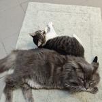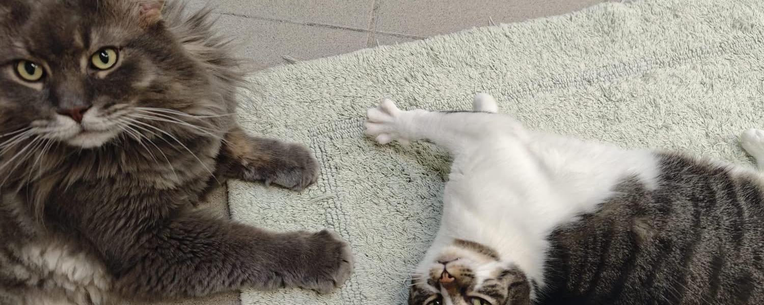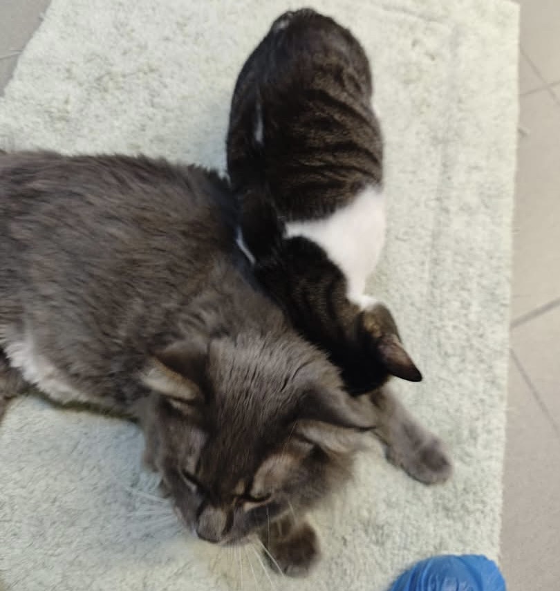 Karine lebt seit fast zwei Jahren bei uns im Tierheim. Sie war unter den Katzen immer das Mobbingopfer und vor uns Menschen zog sie sich auch lieber zurück. Um der kleinen Katzendame endlich etwas Ruhe zu gönnen, - sie hatte mittlerweile wirklich Angst vor ihren Zimmerkollegen - packten wir sie kurzerhand zu Ares ins Zimmer, der im Juli 2025 wegen Umzug bei uns abgegeben wurde. Der große „Buddha“, durch fast nichts aus der Ruhe zu bringen, ließ die kleine Katzendame erstmal in Ruhe ankommen und Karine fühlte sich von Tag zu Tag sicherer bei ihrem großen neuen Mitbewohner. Inzwischen sind die beiden nicht mehr zu trennen und Karine ist sogar gegenüber Pflegern und Ehrenamtlichen deutlich aufgeschlossener geworden. Wir suchen für das ungleiche Paar ein ruhiges Zuhause in reiner Wohnungshaltung, in dem sie auf jeden Fall zusammenbleiben dürfen. Ein abgesicherter Balkon, auf dem die beiden auch mal die frische Luft und Sonne genießen können, würde ihr Glück abrunden. Andere Haustiere und Kinder sollten nicht im neuen Heim leben, weil Karine sehr stressanfällig ist und der Trubel für die Kätzin einfach zu viel wäre.